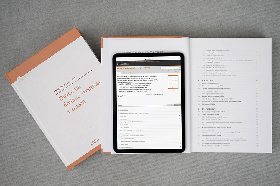 - Priročnik v tiskani in digitalni različici: 127 EUR brez DDV v letu 2023 (133,35 EUR z DDV)