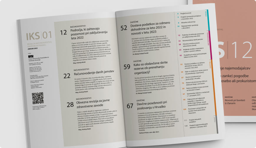 Revija IKS je vodilni slovenski vir informacij za delo na področjih računovodstva, davščin in financ. Enkrat na mesec prinaša pregled najpomembnejših novosti, ki jih svetovalci Zveze RFR nadgradijo s pojasnili, tolmačenji in vodili. Revija se ponaša s 50-letno tradicijo in velikim strokovnim ugledom. Digitalna različica strokovno vrednost revije nadgrajuje z vrsto uporabnih funkcionalnosti.